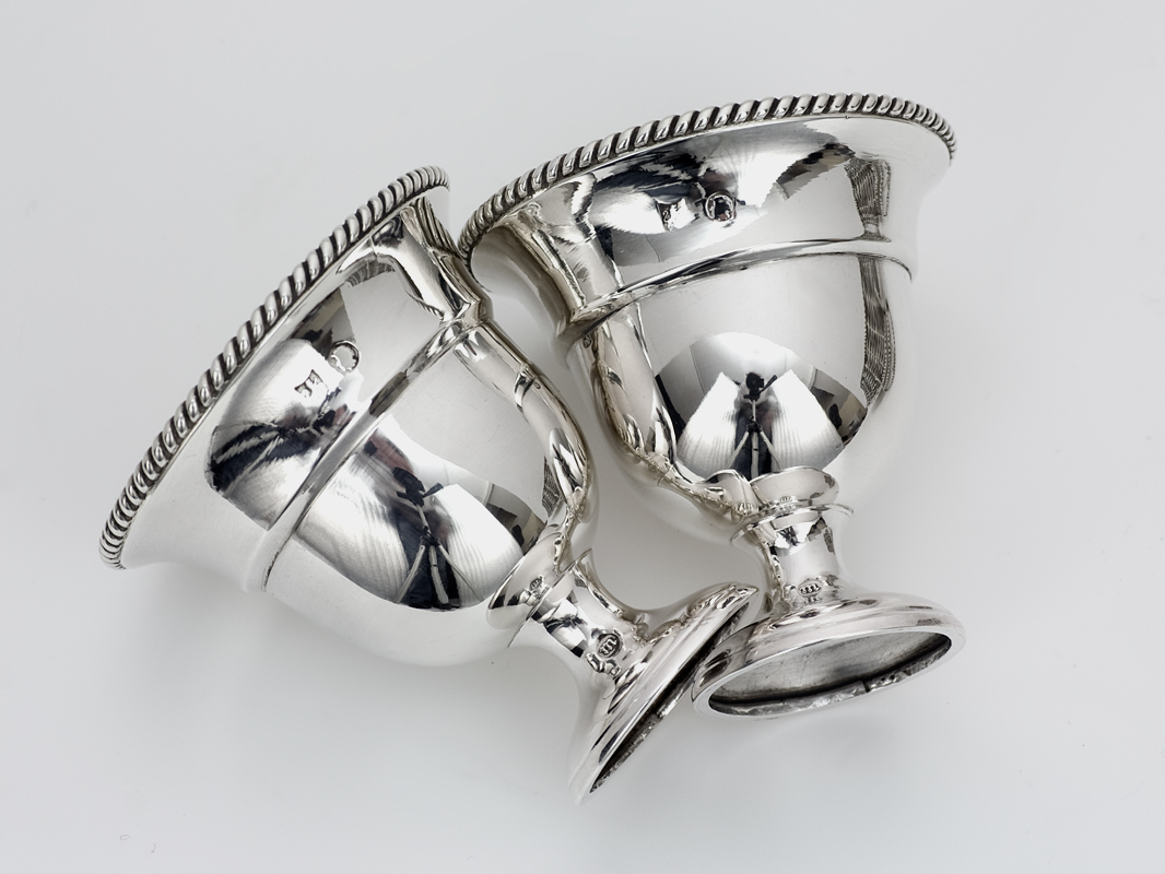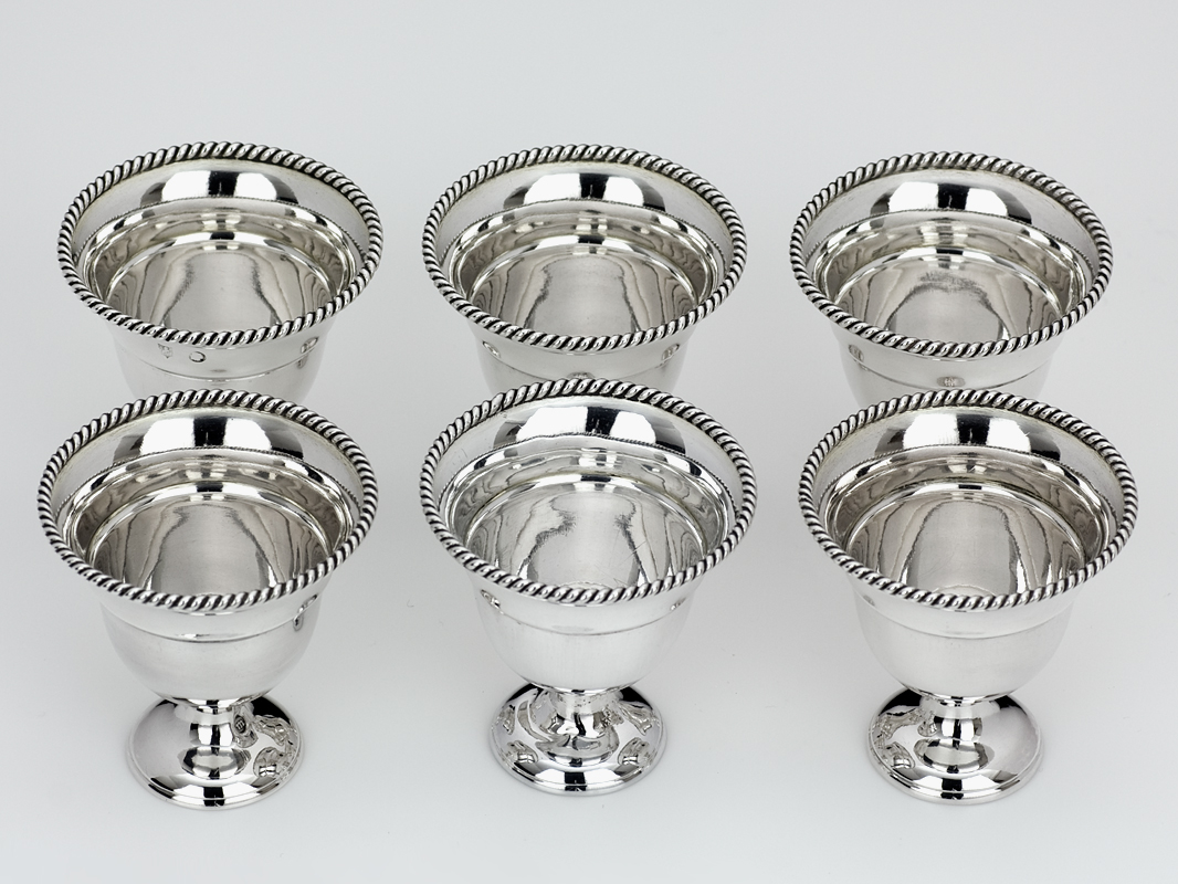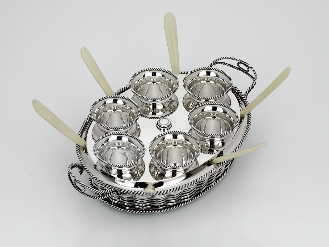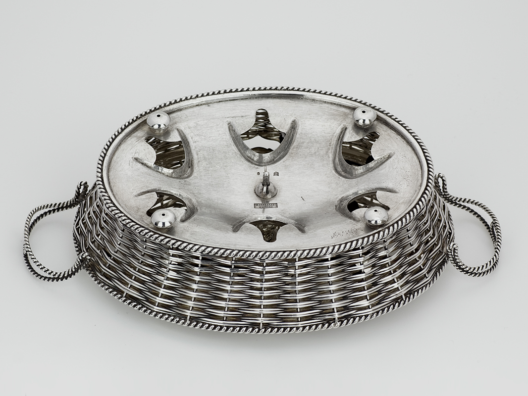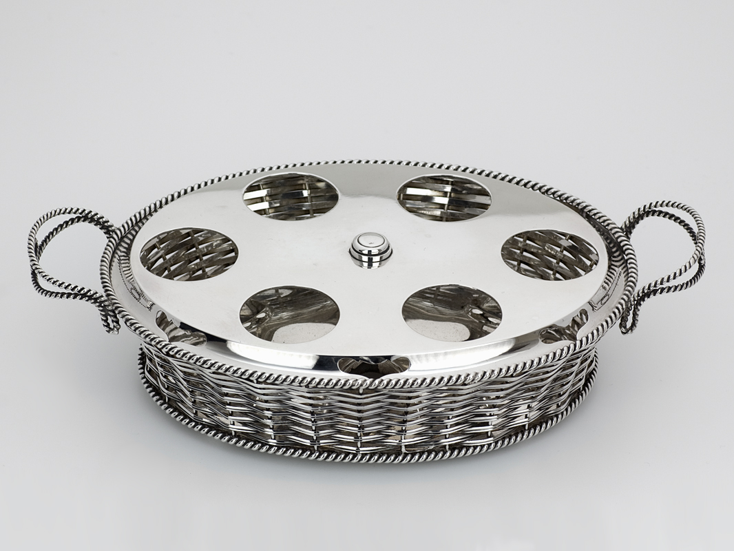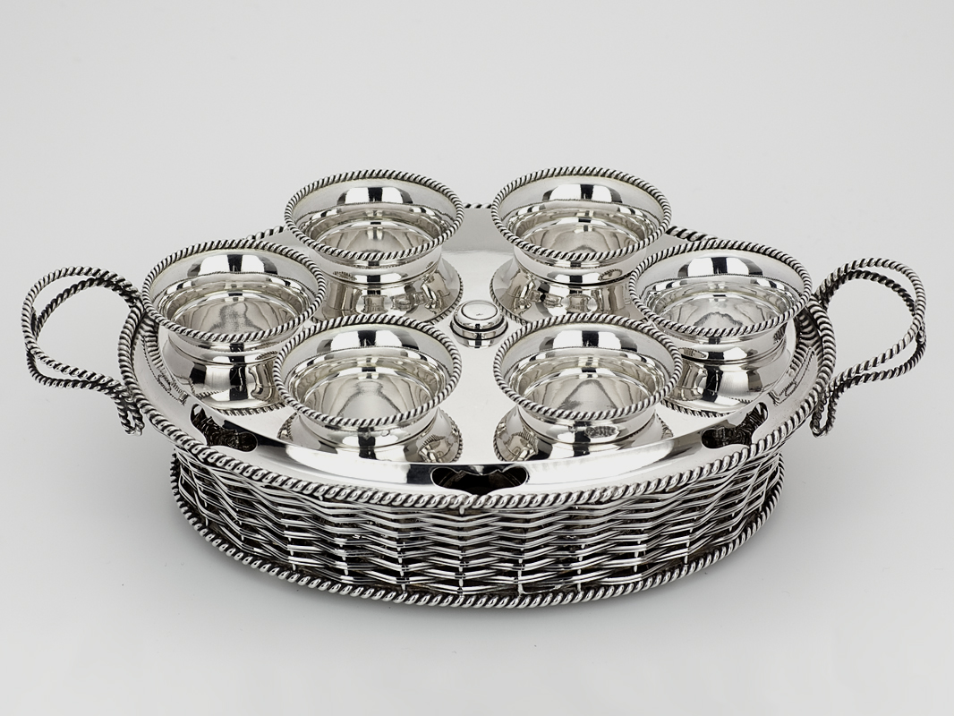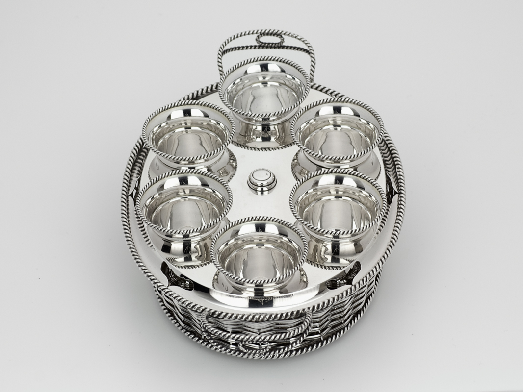 Bijzondere Hollands zilveren gevlochten eierdopmand
